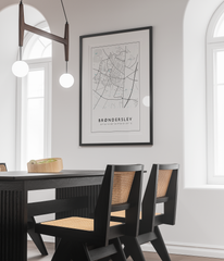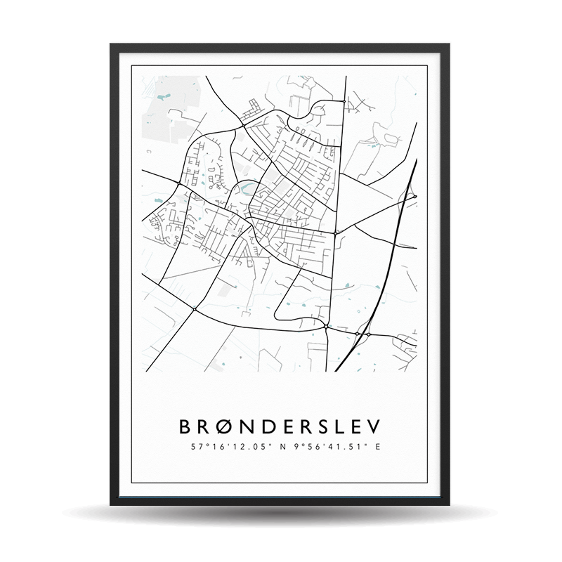 Brønderslev City Map plakat i minimalistisk design. Brønderslev plakaten er designet i et nyt og moderne design som bestræber sig på interiør tiden vi lever i.